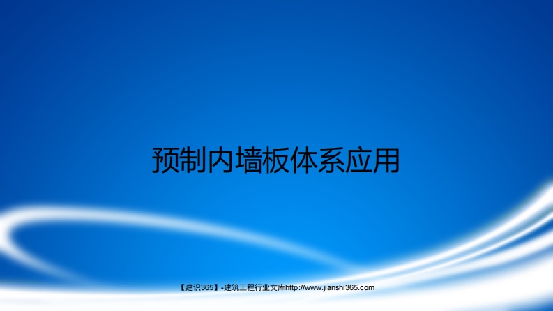 预制内墙板体系应用目录:一、产品介绍二、生产工艺三、墙板设计流程及要点四、墙板施工要点五、质量保障措施六、样板展示【建识365】-建筑工程行业文库htp:wwww.jianshi365.com