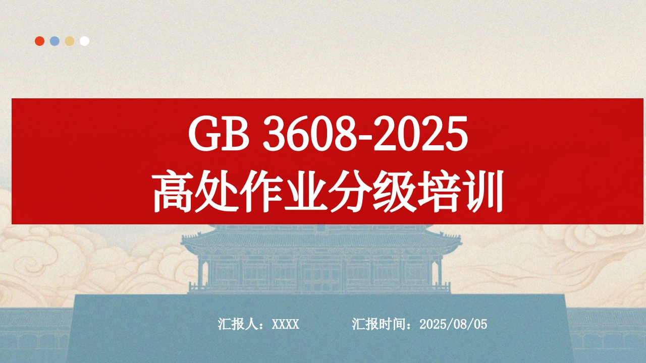 GB3608-2025高处作业分级培训汇报人:XXXX汇报时间:2025/08/05目录Contents01标准沿革与定位02术语与分级逻辑03危险因素对比04计算与实施差异05落地与合规建议
